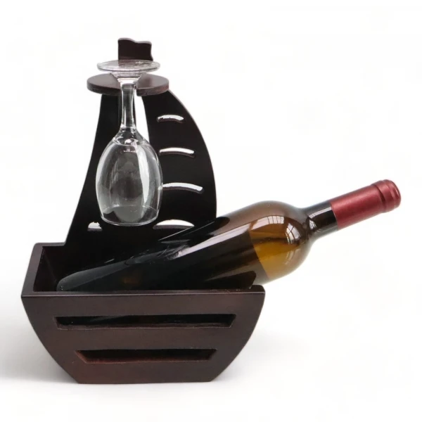 מעמד לבקבוק יין מעץ סירה + כוס 1866