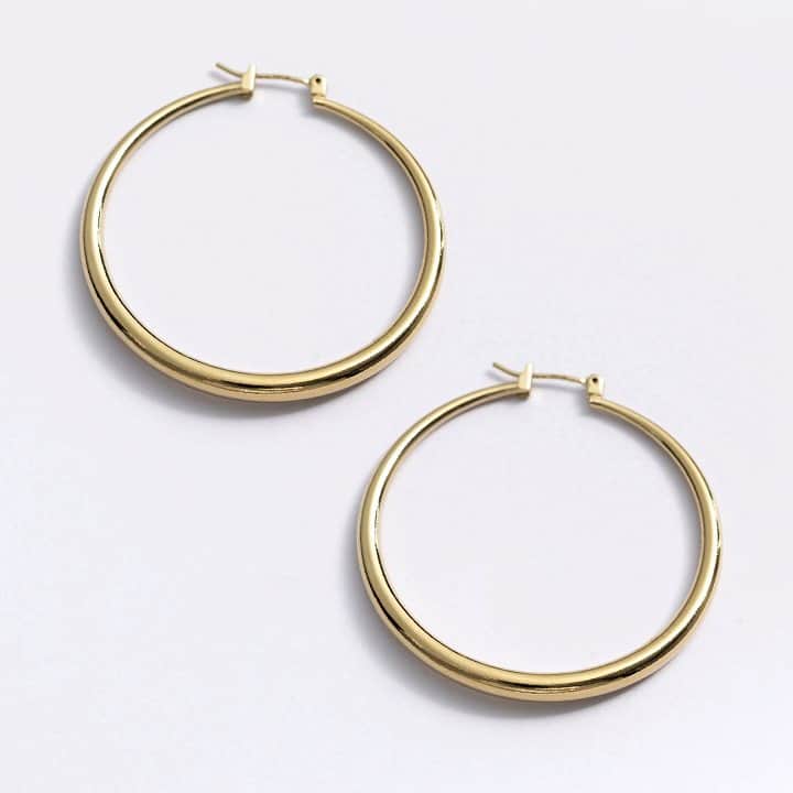 עגילי חישוק קלאסיים ונשיים (L), מצופים זהב 24 K ומעוצבים בעבודת יד.