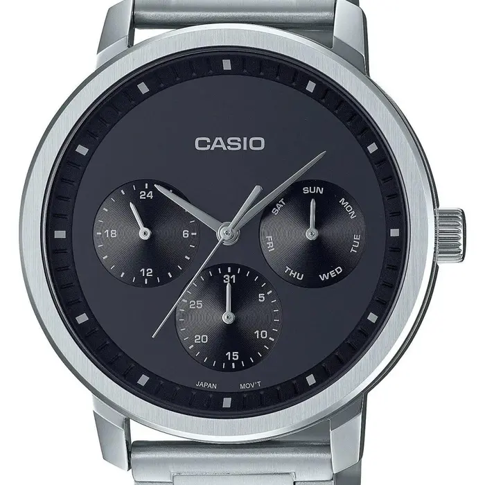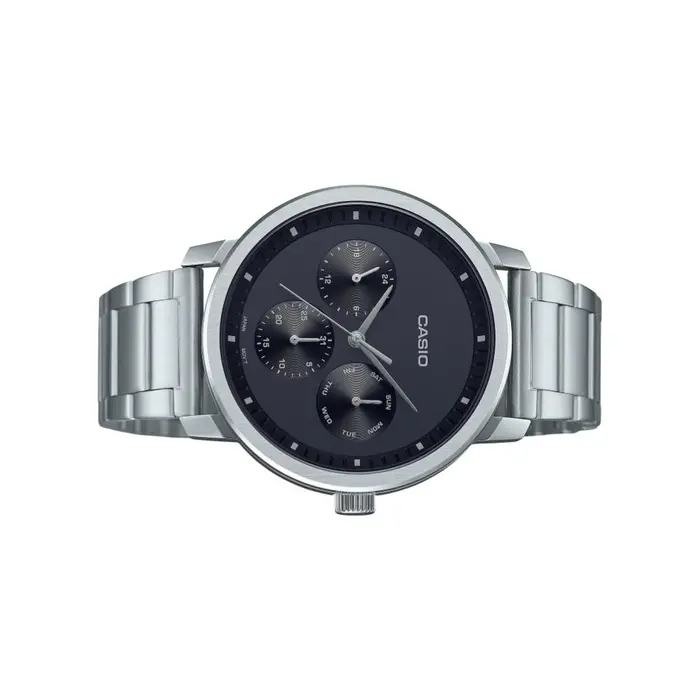 הקו האנלוגי של קסיו בעיצוב אלגנטי לנוחות מתוחכמת. מראה פני השעון מעוצבים בצורה מינימליסטית ויוקרתית המתאימה לכל סיטואציה, עם גוף דק ביותר ותצוגה פשוטה וקלה לקריאה, שעות במראה נקודות לבנות על רקע כחול עמוק, עדין וסולידי, עם שלושה מחוגים ראשיים המראים שעות, דקות ושניות בנוסף לשלושה מחוגים נוספים המראים את היום בשבוע, תאריך ושעה ב – 24 שעות היממה. השעון עמיד לעומק מים של עד – 50 מטרים, מאובזר בזכוכית מינרלית ומגיע עם רצועת יד עשויה פלדת אל חלד.