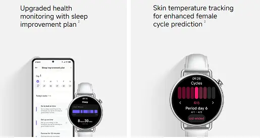ניתוח הנתונים היומיומיים שלכם: דופק לב וחמצן בדם ( (SpO2, ניטור שינה, מזג אויר, ניטור רמת לחץ נפשי (סטרס), קלוריות, פעילויות: צעדים ועמידה; ניתן לשנות את סדר המדדים דרך היישום.