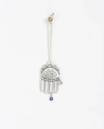 בתחתית החמסה תלויה עין כחולה נוספת – שמגבירה את מוטיב השמירה וההגנה.
