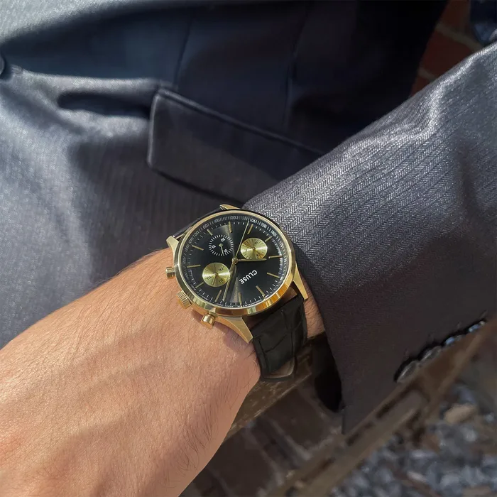 Anthéor Multifunction Watch Leather, Full Black, Gold Colour