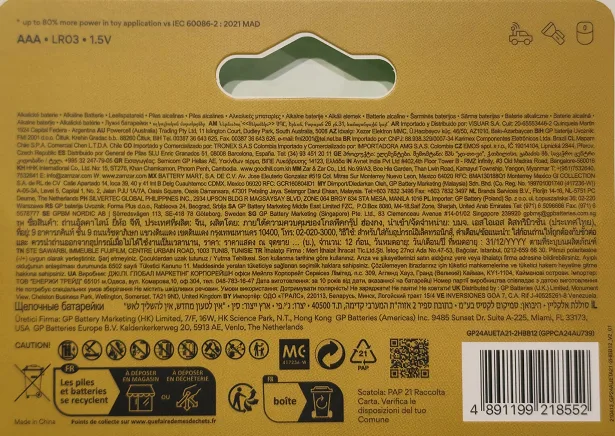 ⚡עמידות: מחזיקות מעמד עד 10 שנים באחסון: סוללות AAA של המותג GP נבדלות בעמידותן המדהימה, מה שהופך אותן לפנינה מושלמת מבחינת ערך. הן מחזיקות מעמד עד 42 שעות בעכברי מחשב ועד 90 שעות ברדיו נייד ומכשירים דומים.