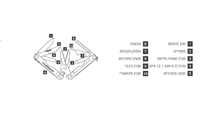 מספריים חזקות וערכת כלים אישית המתחברת בקלות למחזיק המפתחות שלך הופכת את כלי המיקרה לייחודי כל-כך, 10 כלים שימושיים ארוזים בתוך לדרמן קומפקטי וקל משקל.