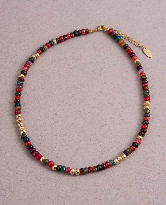 שרשרת חרוזי אגת צבעוניים ויציקות מתכת מצופות