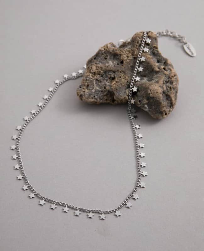 שרשרת קולר מעוצבת וסופר-טרנדית בדוגמת גורמט עדינה, שעליה תלויים כוכבים קטנטנים. השרשרת מצופה זהב 24 קראט והיא מעניקה לך לוק מלא שיק אופנתי