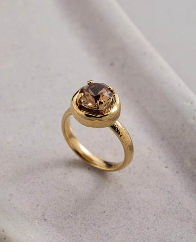 טבעת עדינה ונשית, מלאה שיק ואלגנטיות, מעוצבת בעבודת יד ומצופה זהב 24 קראט. טבעת איזבלה משובצת קריסטל מרהיב של סברובסקי