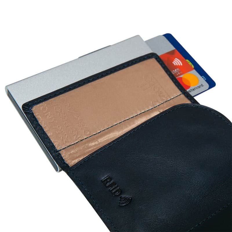 נרתיק קטן וקשיח עשוי עור איטלקי לגבר בעל הגנת RFID נגד גניבת מידע שעל הכרטיס. הנרתיק בעל 4 תאים לכרטיסים (תא אחד עם הגנת RFID), כיס קטן למזומן וכיס למטבעות. *אחראיות לשנה לארנק
