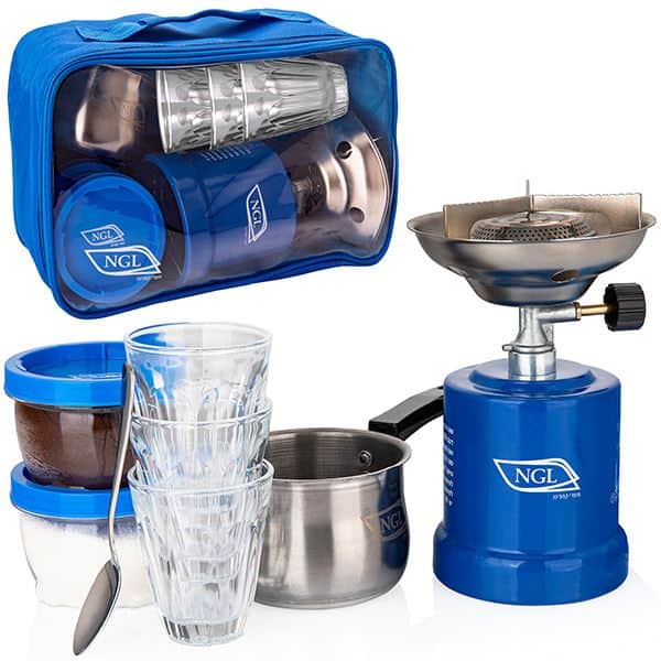 ערכת קפה NGL להכנת תה וקפה בשטח מגיעה בתיק נשיאה איכותי כולל ידית אחיזה