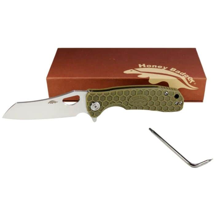 ה – HB1040 של Honey Badger מעוצב להיות קשוח, עמיד ומתאים למשימות הישרדות, פעילות בחיק הטבע ושימוש יומיומי בנוסף להיותו עזר אבטחה אישי עוצמתי בעת הצורך ולא משנה אם היד החזקה שלכם היא יד ימין או יד שמאל, התכנון הארגונומי של ידית הניילון הקשיח בכל הסכינים של Honey Badger מתאים לכולם, ימניים ושמאליים כאחד. להב הסכין עשוי פלדת אל-חלד מסוג 8CR13MoV מחושלת בחום גבוהה ליצירת להב קשה וקשוח שאינו זקוק להשחזה לעיתים קרובות.