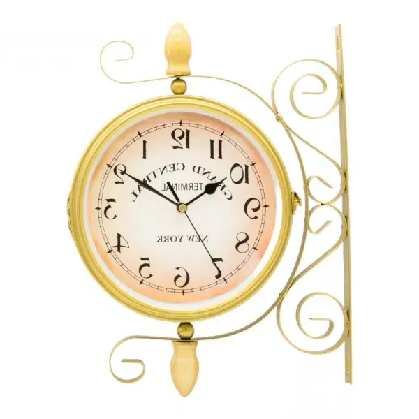 שעון לתליה בעיצוב השעונים התלויים בתחנות הרכבת ברחבי העולם. את השעה ניתן לראות משני צידי השעון.
