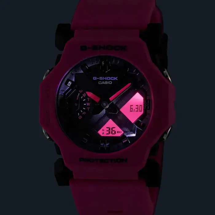 בחרו בין ה – GA-2300-1ADR בצבע שחור, ה GA-2300 בלבן קלאסי, או ה – GA-2300 בצבע ורוד תוסס עם מסך תצוגה (LCD) בצבע תואם.