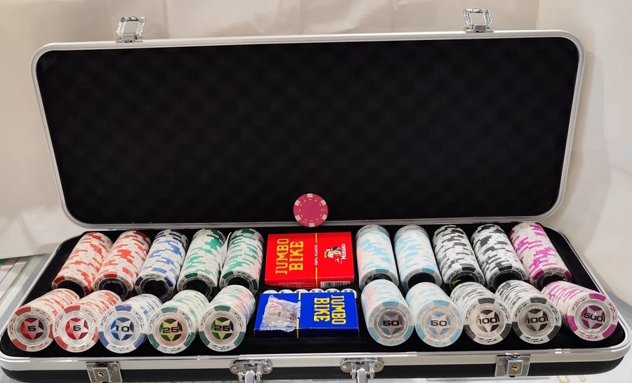 מזוודה ערכת פוקר 500 צ'טונים 14 גרם חיימר VIP כולל מזוודה יוקרתית POKER