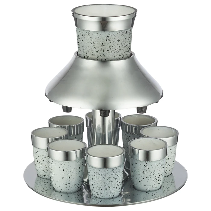מחלק יין אלומניום מהודר עם 8 כוסיות 49069 נצנצים כסף