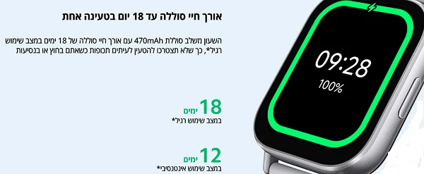 סוללה עוצמתית 470mAh לשימוש של עד כ- 18 ימים