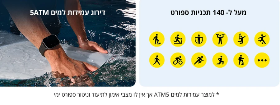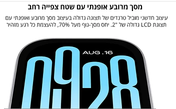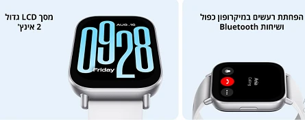 לשעון תמיכה בעברית מלאה ותמיכה בשיחות Bluetooth