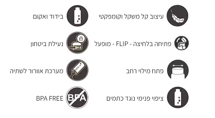 סדרה בעיצוב מודרני וארגונומי. בקבוקים תרמיים סופר איכותיים, בצבעים סולידיים ואלגנטים, קל ונוח ביותר לשימוש וניקוי, נפתח בלחיצה אחת ואידיאלי להפעלה ביד אחת. בנוסף מכיל מנגנון הפתיחה גם אפשרות נעילה אשר עושה אותו בטיחותי, נוח לנשיאה בתיק ועמיד בפני נזילות.