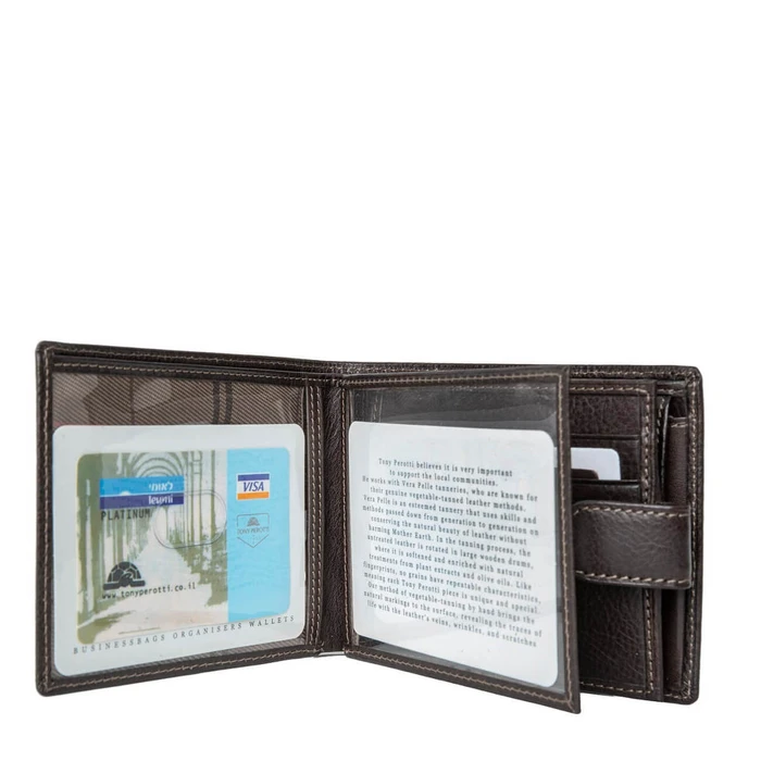 ארנק לגבר מעור איכותי בעל שני כיסים למזומן, 11 תאים לכרטיסים, מחיצה אמצעית עם נעילת אבטחה, תא שקוף לרישיונות ותא לכסף קטן. אחראיות לשנה לארנקי טוני פרוטי