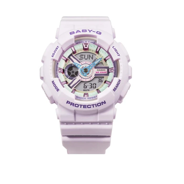 BA-110XPM-6A שעון אנלוגי דיגיטלי BABY G מקולקצית BA-110 המעוצב בהשראת סדרת שעוני ג'י-שוק הפופולארית GA-110. השעון בעיצוב עדכני וחמוד בצבעים רכים