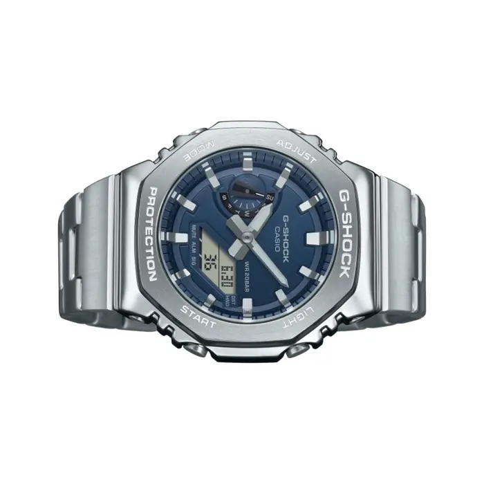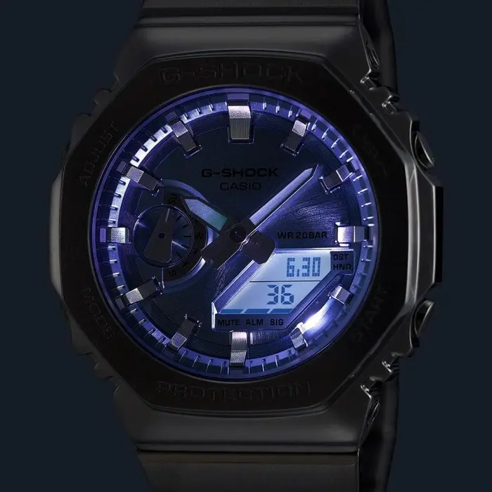 GM-2110D-2BDR הוא התוספת העדכנית לסדרת ה – G-STEEL של ג׳י-שוק. שעון היד הקשוח והאלגנטי מציג שילוב מושלם של אנלוגי ודיגיטלי המבוסס על הדגם המתומן האהוב – GA-2100, כעת עם מסגרת, גוף ורצועת יד עשויים פלדת אל חלד מסוגננת.