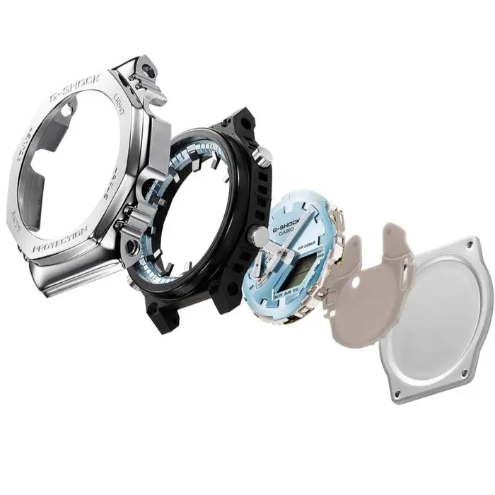 מסגרת הנירוסטה המתומנת מחושלת ומלוטשת לרמת גימור גבוהה ביותר המקנה ל – GM-2110D-2BDR מראה מתוחכם ואלגנטי אך קשוח. חלקו הפנימי של גוף השעון עשוי משרף פלסטי עדין מחוזק בסיבי זכוכית בקשיחות גבוהה. גופו של ה – GM-2110D-2BDR הוא הדק ביותר מכל הדגמים ה״משתלבים״ של ג׳י-שוק, עם עובי של – 11.8 מ"מ בלבד.