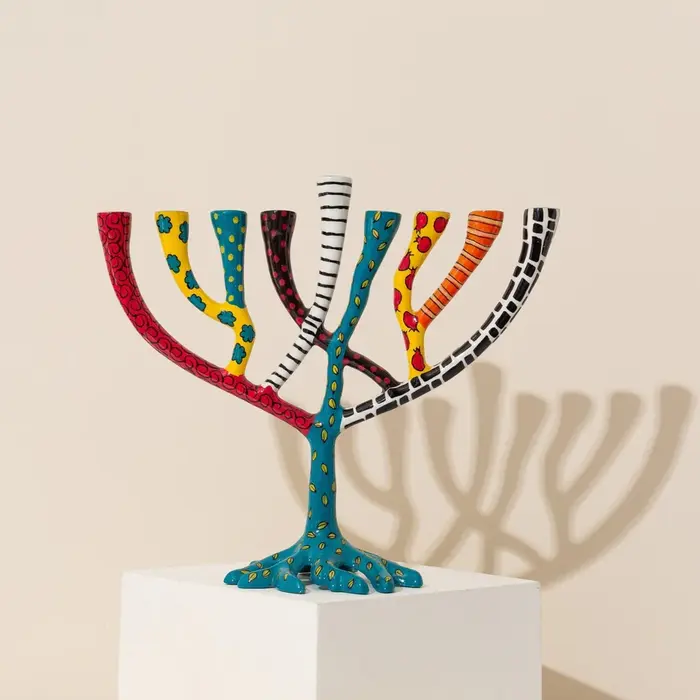 חנוכיה מעוצבת מאלומיניום יצוק צבוע באמייל עבודת יד 9264 דגם The Wild Tree.