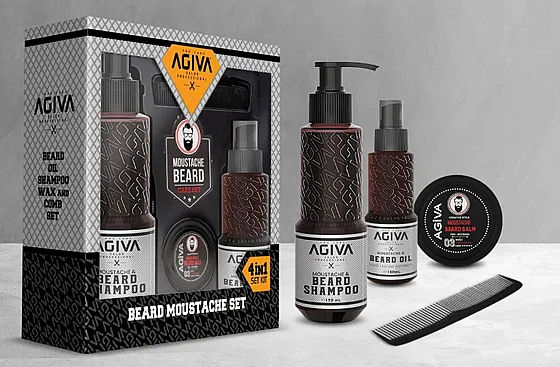 עניקו לזקן שלכם את הטיפול האולטימטיבי עם Agiva Beard & Moustache Gift Set – סט יוקרתי ומקצועי שפותח במיוחד עבור גברים שמעריכים מראה מטופח ומסודר.