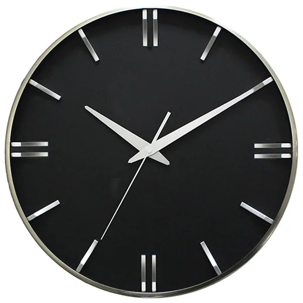 שעון קיר שחור עם ספרות כסופות מובלטות ומסגרת כסופה 40 סמ 4989