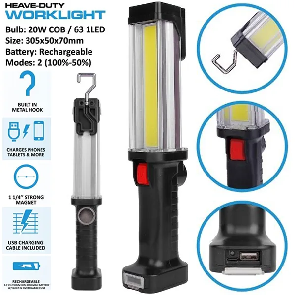 תאורת שטח / חירום עוצמתית 20W נטענת 63 לדים משולב עם מטען פאוור בנק לניידים